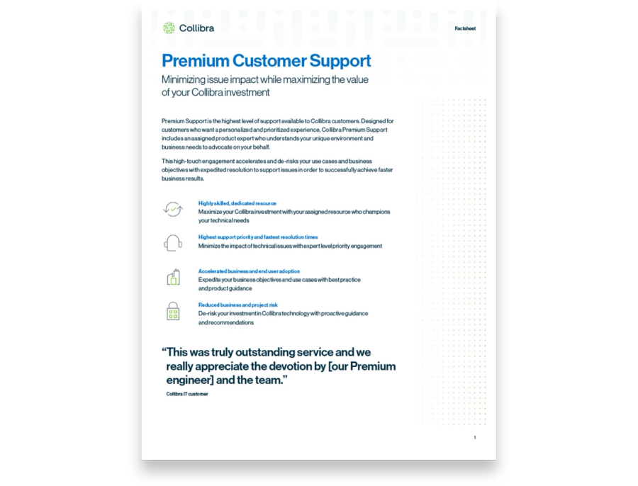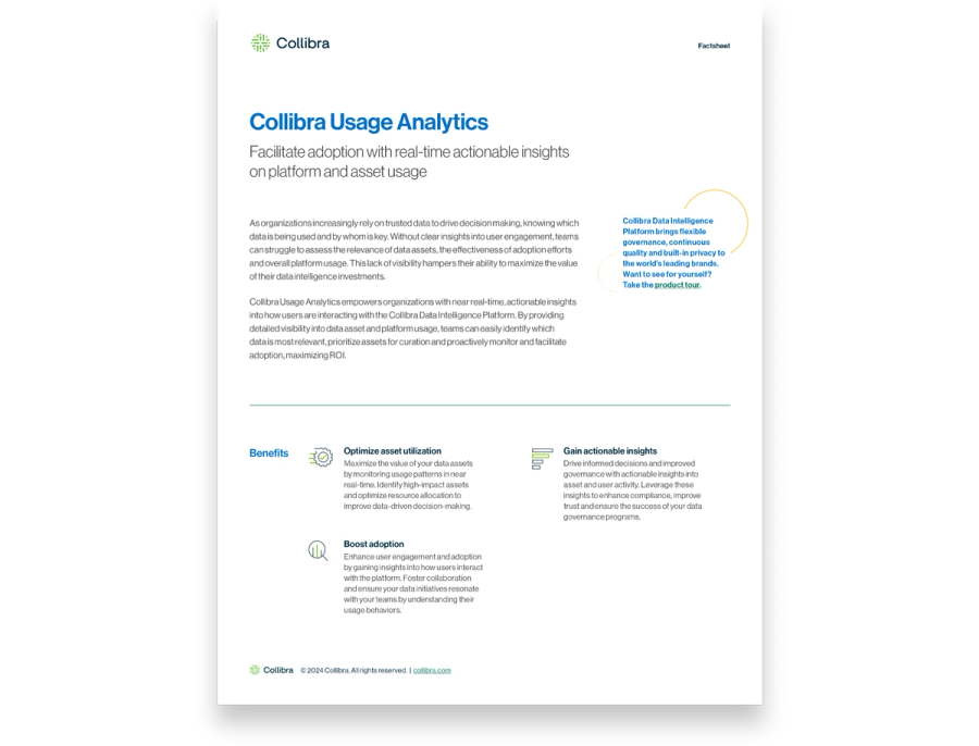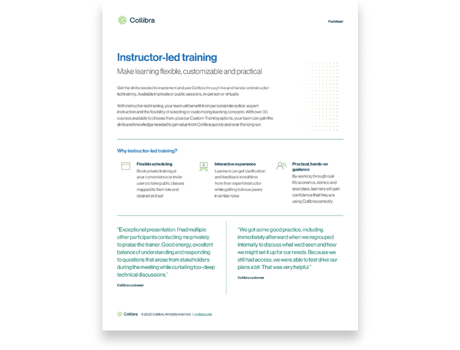 In addition to this library, we encourage you to explore the Collibra Community — our vibrant and collaborative online space where customers, partners and experts share insights and best practices — and read our blog to hear from product experts and thought leaders on how to make data meaningful.