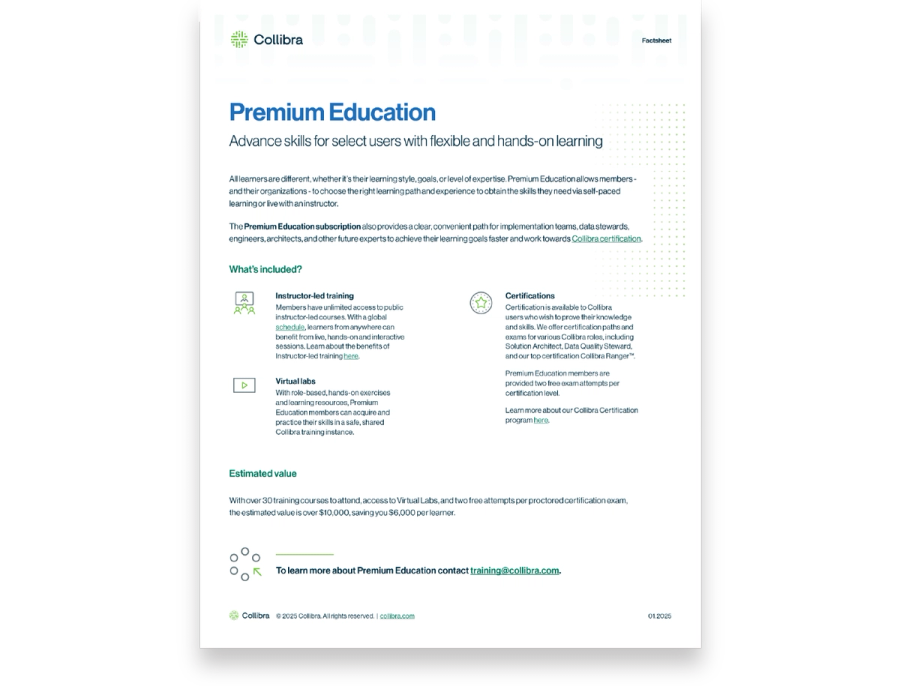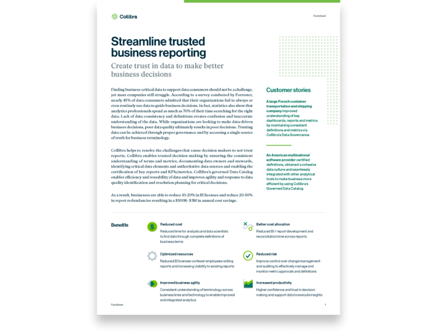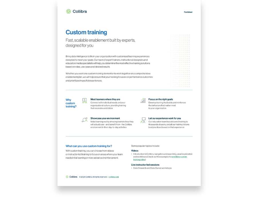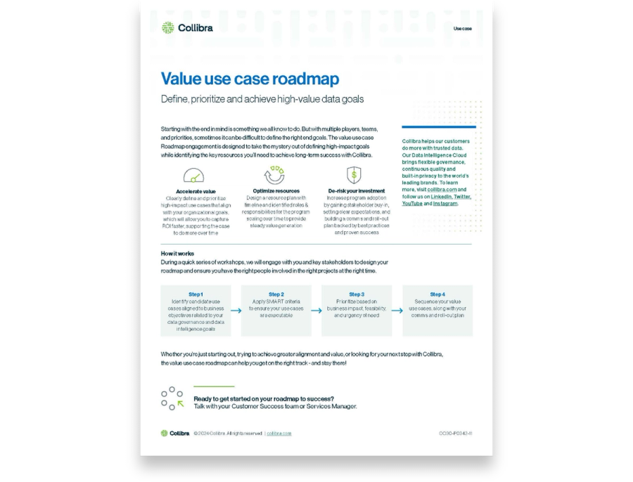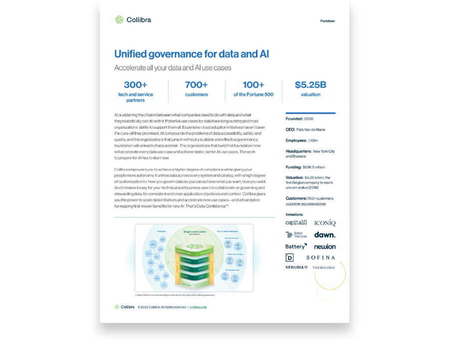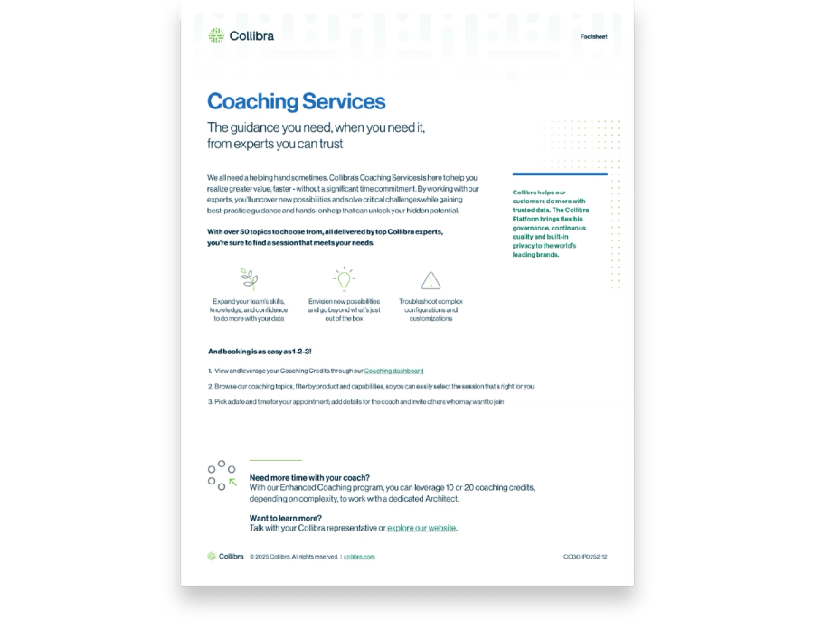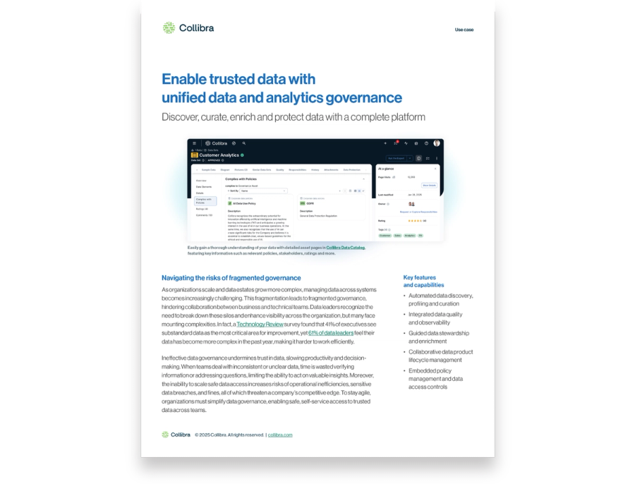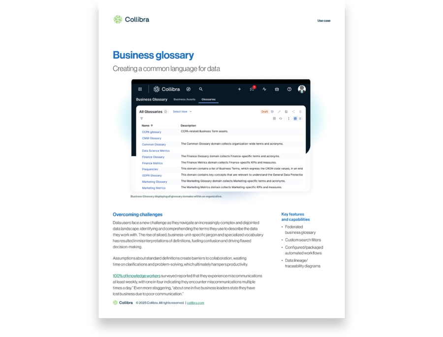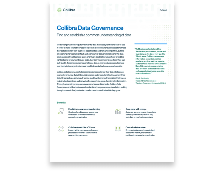 The Collibra resource library is our collection of individual resources created to help you along your journey to do more with trusted data.